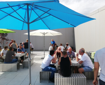 Bei einer feinen Wurst vom Grill und einem kühlen Bier durften wir gemeinsam mit allen Mitarbeiterinnen und Mitarbeitern auf die Dachterrasse anstossen und sie gebührend einweihen.