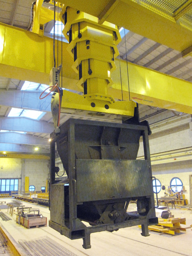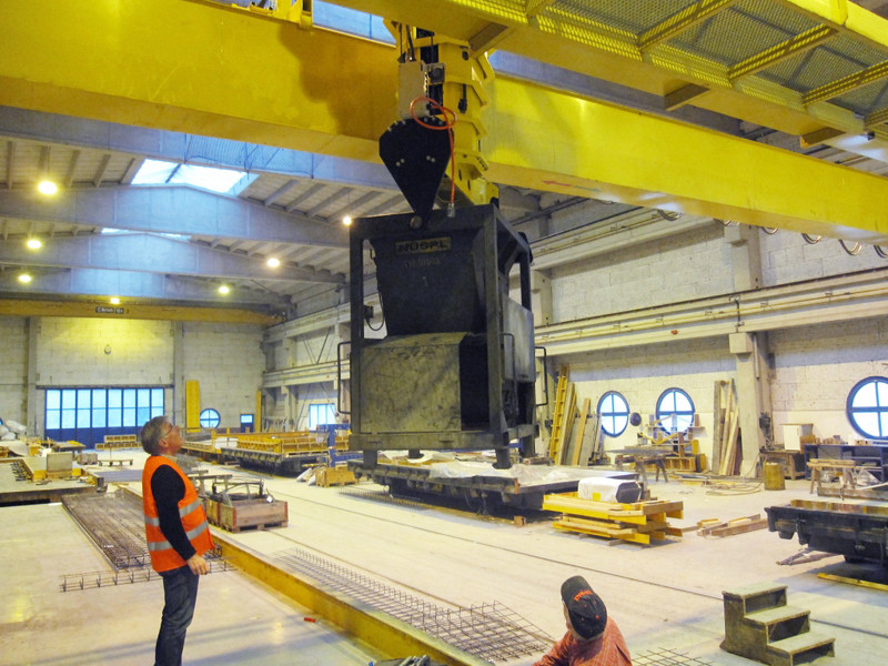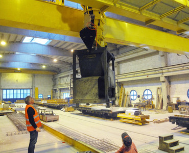 Der Betonierkran hat eine Spannweite von 23.7m und eine Traglast von 5t. Zurzeit wird in Rickenbach LU bei der Sebastian Müller AG ein neues Werk aufgebaut. Nach Fertigstellung der neuen Produktionshallen wird die gesamte Brun Elementwerk AG von Emmen nach Rickenbach zügeln. Auch dieser modernisierte Betonierkran wird im kommenden Herbst gezügelt und die neue Produktion vervollständigen.
