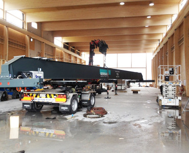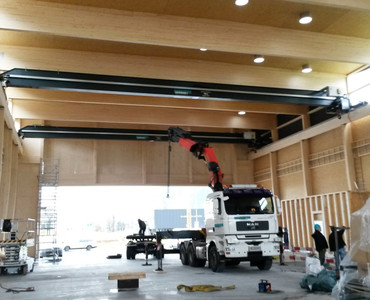 Zwei Einträger-Brückenkrane in zwei Tagen transportiert und fixfertig montiert.