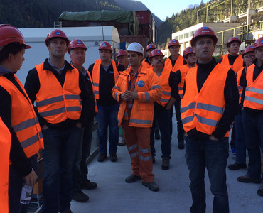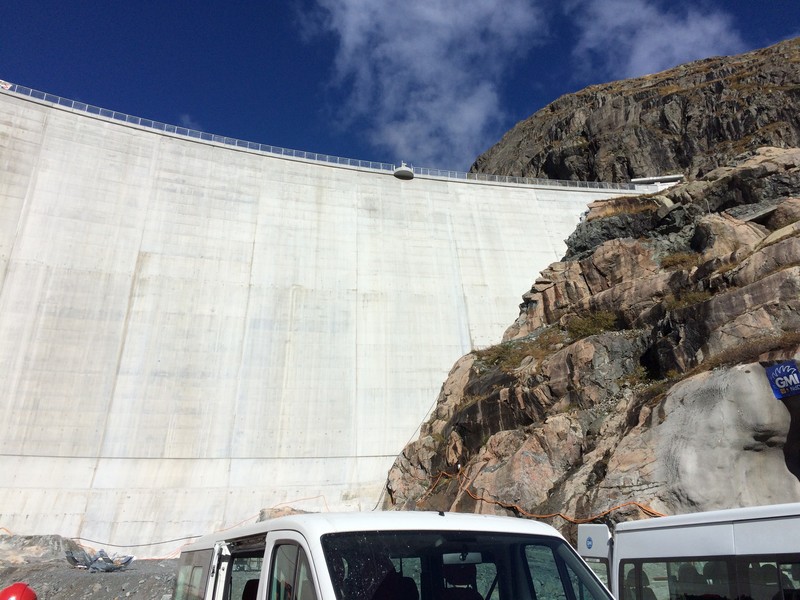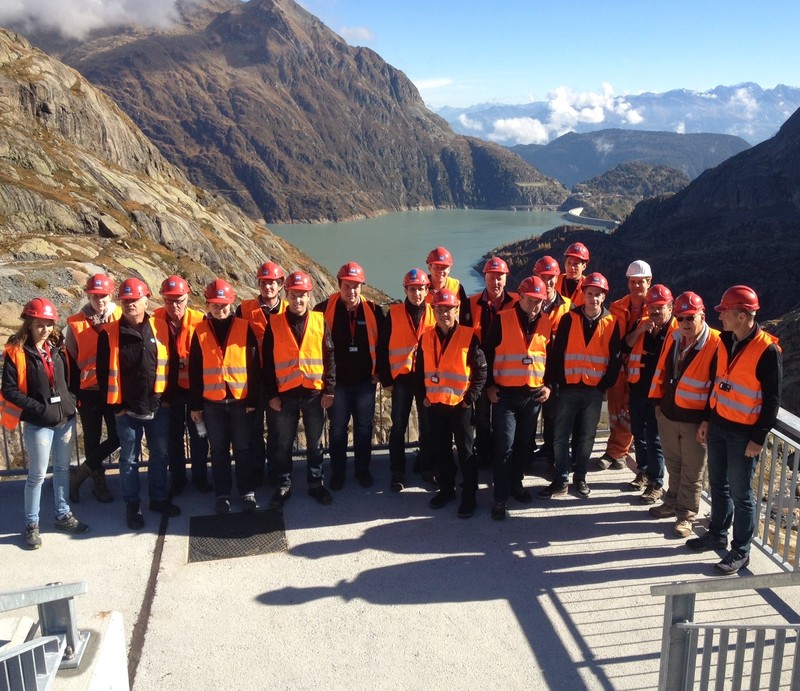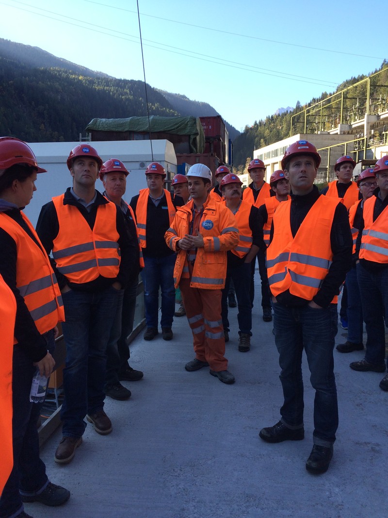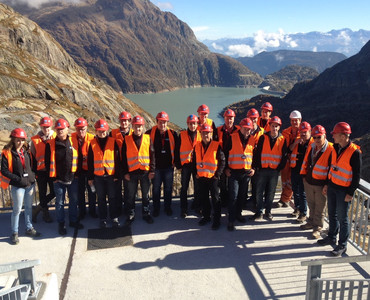 Als Erstes erwartete uns ein spannender Vortrag von Piero Chirco der uns das Projekt des Pumpspeicherkraftwerks „Nant de Drance“ näher vorstellte. Nachdem wir nun wussten, was es mit dem Projekt auf sich hat, wurden wir mit Helmen und Leuchtwesten ausgestattet und fuhren mit zwei Bussen „in den Berg.“ Hier durften wir die Staumauer von „Vieux-Emosson“ und auch die runden Stollen, in denen später das Wasser hindurchfliessen wird, anschauen. Der Besuch in der Maschinenkaverne war natürlich das Highlight für uns, denn dort konnten wir unseren eigenen Brückenkran „in Action“ erleben. Nach der rund dreistündigen Führung hatten nun alle ein Ziel – die Kantine und somit das Mittagessen. Nach dieser Stärkung war es bereits Zeit, sich zu verabschieden.