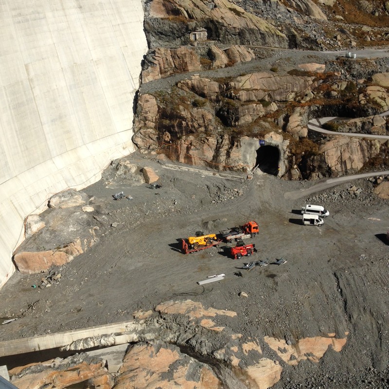 Hier wurden wir von Piero Chirco und Alexander Heim empfangen. Beide sind Mitarbeiter unseres Kunden, der GMI (Groupement Marti Implenia) und sind auf der Grossbaustelle „Nant de Drance“ tätig. Hier wird aktuell das zweitgrösste Pumpspeicherkraftwerk der Schweiz gebaut. Mit 900 MW Leistung wird es nach Inbetriebnahme Ende 2018 jährlich rund 2.5 Milliarden kWh Strom erzeugen.