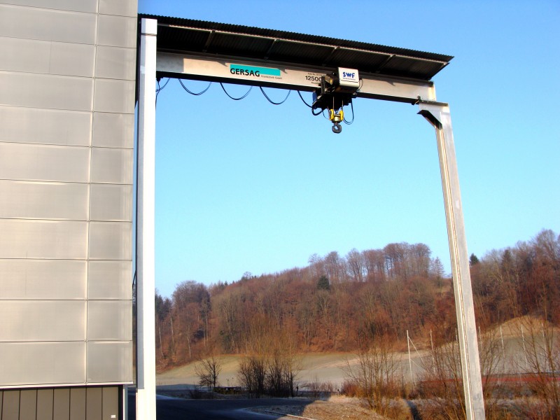 Anwendungsbeispiel ist die Korrosionsschutzindustrie, wo Teile durch eine Spritzkabine bewegt werden können. Oder ein mehrstöckiges Gebäude, bei dem Material ausserhalb des Gebäudes hochgezogen wird und dann in der oberen Etage eingefahren werden kann. Ein weiteres Beispiel ist bei Revisionsarbeiten, wo grosse Motoren so auch an schwer zu erreichenden Orten problemlos ausgebaut und dank der Einschienenbahn befördert werden können, die exakt über dem Schwerpunkt des Motors angeordnet ist.