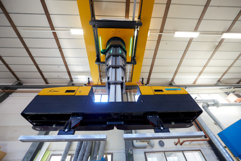 Zum Beispiel kann damit die ganze Logistik rund um Abbundanlagen ausgeführt werden: mit Beschickung der Anlagen, der Entnahme bearbeiteter Teile, der Zusammenstellung von Coils, des Weitertransports und vielem mehr.