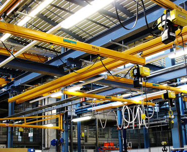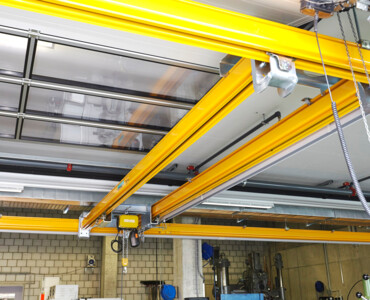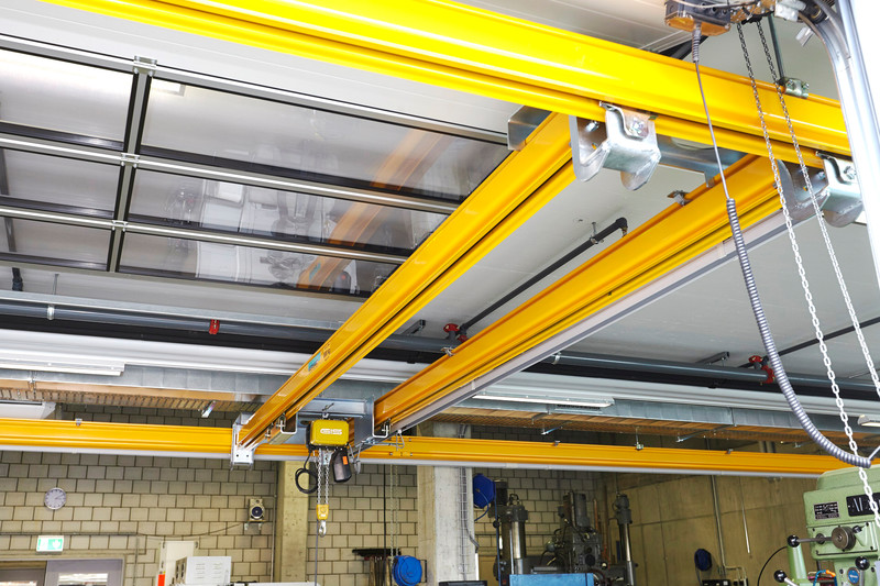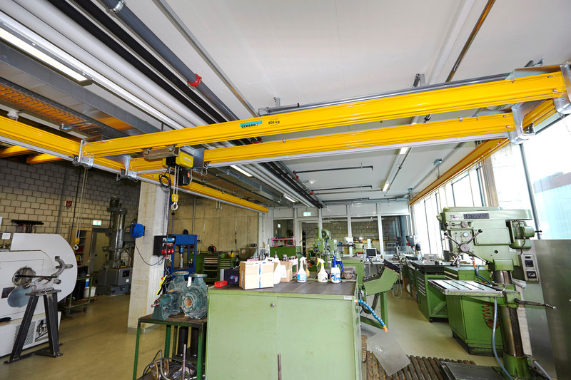 Die kostengünstige Alternative zum Deckenkran bis 2'000 kg Seine Spannweite ist begrenzt und von der Traglast abhängig. Sein grosser Vorteil ist seine Vielseitigkeit im Baukasten. Das System unterstützt unzählige Kombinationen für praktisch jedes Förderproblem. Bei kleineren Traglasten werden Brücke und Hubwerk von Hand bewegt. Für schwerere Lasten oder bei grosser Hubhöhe empfiehlt sich ein elektrischer Antrieb.