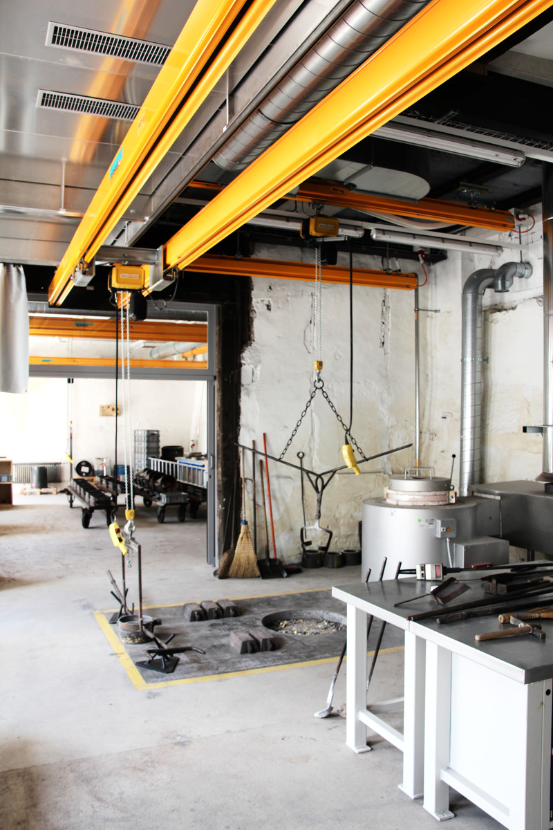 Der Systemkran wird oft mit Handling-Geräten wie zum Beispiel Vakuumgeräten oder Lastmagneten ausgerüstet.