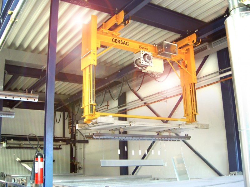 Umsetzer werden vorwiegend als vollautomatische Anlagen ausgeführt. Sie befördern zum Beispiel Gehänge von verschiedenen Positionen vollautomatisch durch einen programmierten Arbeitszyklus. Durch die geführte Hubbewegung ist exaktes Positionieren auch im Automatikbetrieb möglich. Absolute Wegmesssysteme garantieren jederzeit eine genaue Positionierung. Verschiedenste Ausführungen sind hier möglich. Je nach Hubhöhe und Platzverhältnissen wird der Hubmast als einfache Führung ausgebildet oder lässt sich sogar teleskopieren.
