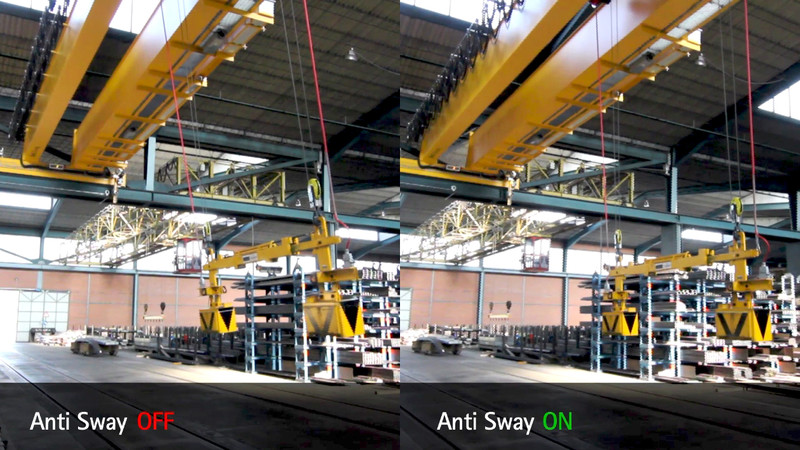 Zudem sind alle drei Anlagen mit einer elektronischen Lastpendeldämpfung Sway Control ausgestattet. Diese überwacht alle Bewegungen sowie Hubhöhe und Geschwindigkeit. Damit regelt es die Beschleunigungs- und Bremsrampen, was das Pendeln der angehängten Last verhindert. Durch die Verringerung der Belastung von elektrischen und mechanischen Bauteilen resultiert draus schlussendlich auch ein geringerer Wartungsaufwand.