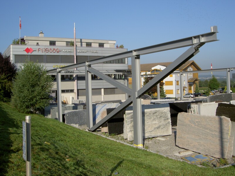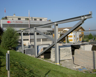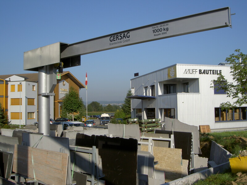 Um die Bewirtschaftung des Granitplatten-Aussenlagers zu optimieren, hat sich die Firma Fliesag AG in Schenkon für Aussenkrane der GERSAG Krantechnik entschieden. Mit zwei Kranen - einem Einträger-Brückenkran und einem Schwenkkran - kann das Material auf dem gesamten Lagerplatz schneller und mit weniger Ressourcen bewegt werden.