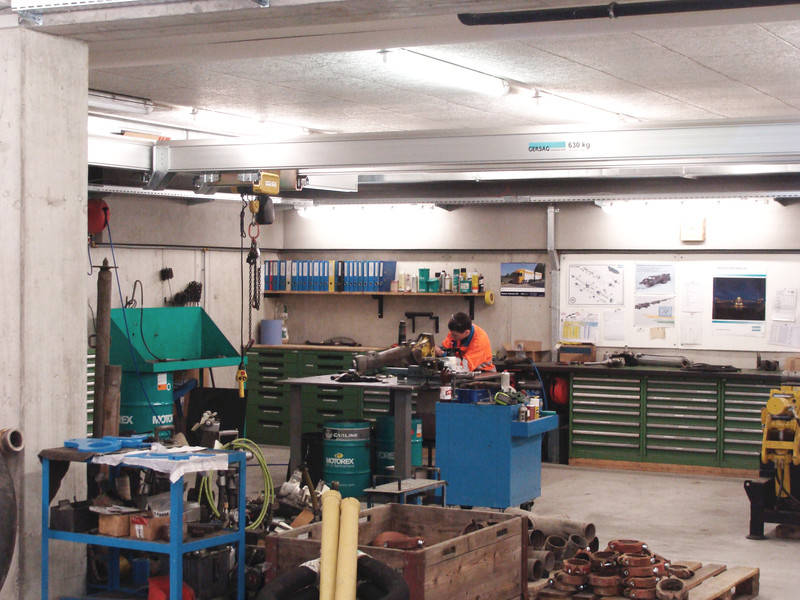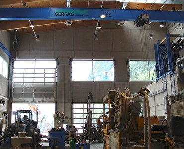 Die professionelle Beratung im Vorfeld war ausschlaggebend für diese massgeschneiderte Lösung. In der Werkhof-Halle montierte Gersag einen 8t Einträger-Brückenkran sowie in der mechanischen Werkstatt eine Systemkrananlage mit 630kg Tragkraft.