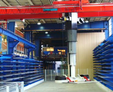 Der Stapelkran wird über absolute Wegmesssysteme überwacht. Verschiedene Touch-Screen-Panels stehen für die Eingabe der Aufträge zur Verfügung. Die Steuerung arbeitet die einzelnen Aufträge ab, sodass stets das gewünschte Material zur Verfügung steht.