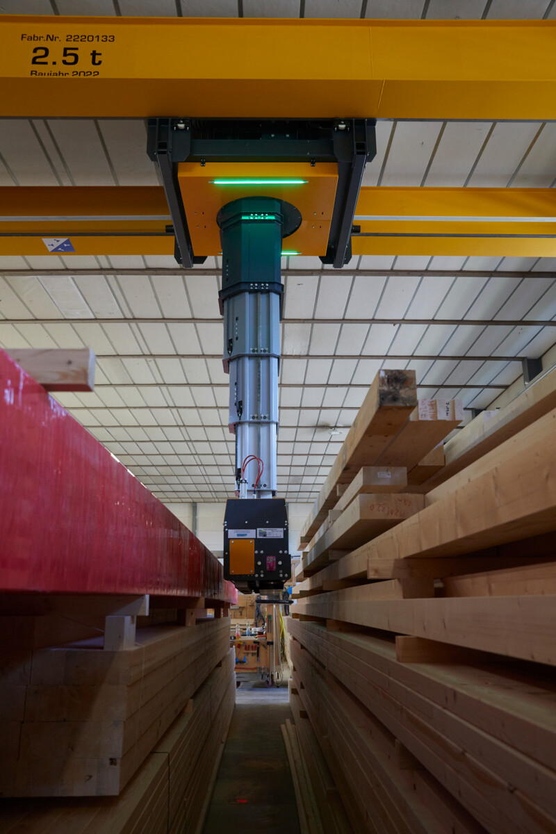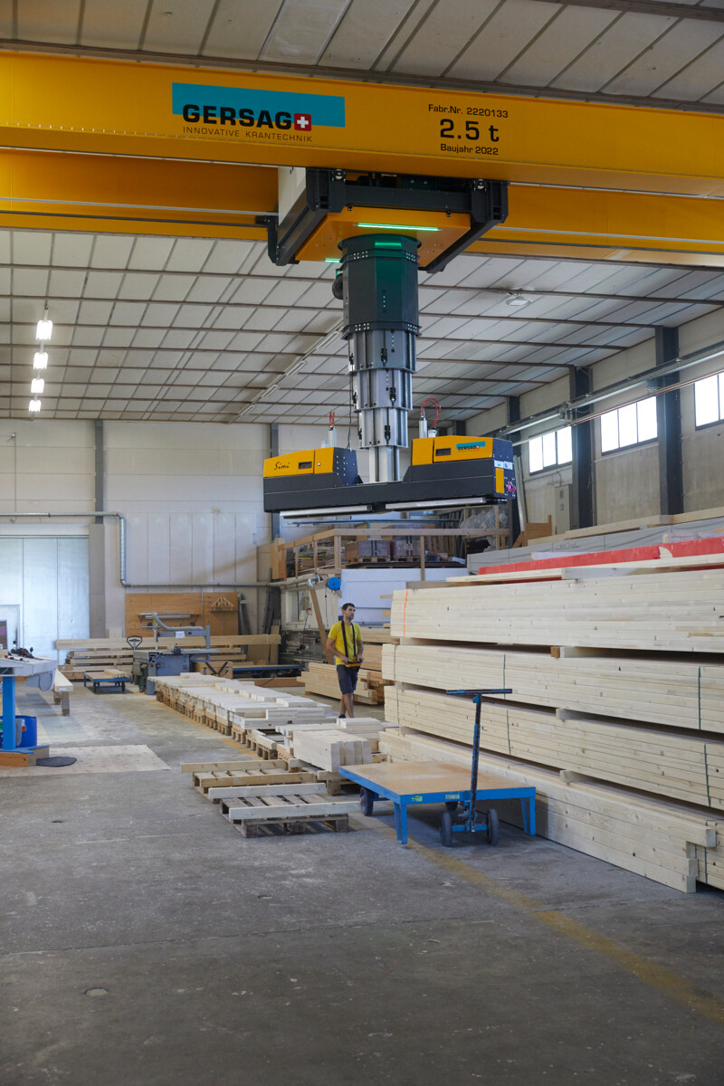 Dank der flexiblen Kombitraverse und der robusten Bauweise unterstützt Simi die innerbetriebliche Logistik spürbar. Warte- und Spitzenzeiten werden reduziert, die verfügbare Hallenfläche optimal genutzt. Das Ergebnis: Ein reibungsloser, durchdachter Materialfluss und mehr Freiraum für das, worauf es wirklich ankommt und das wäre die Qualität im Holzbau.